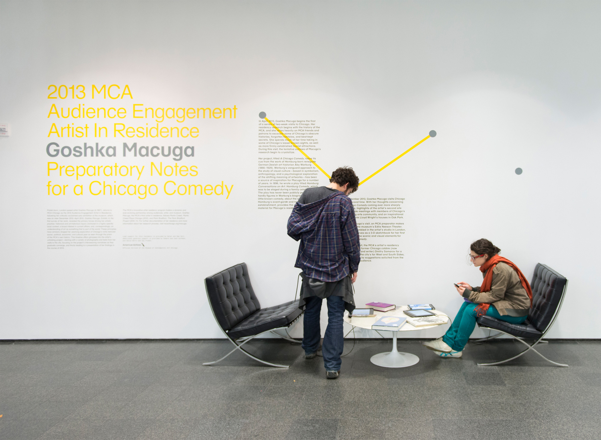 Goshka Macuga is the MCA Chicago's 2013 Artist In Residence. But because the resulting work, likely to be a play, will not exist until the end of the term, the artist's process is being documented and presented to the public as Preparatory Notes for a Chicago Comedy. Our team became involved as interactive media designers/developers...